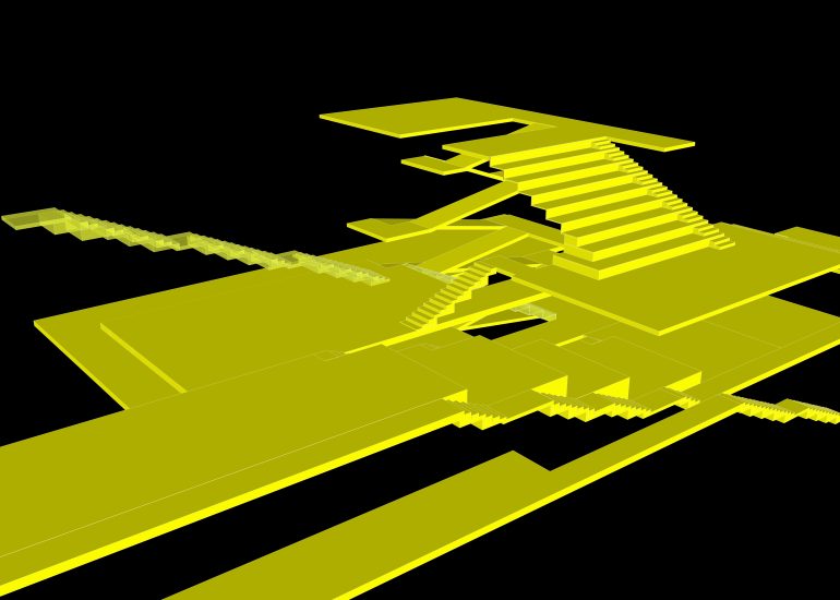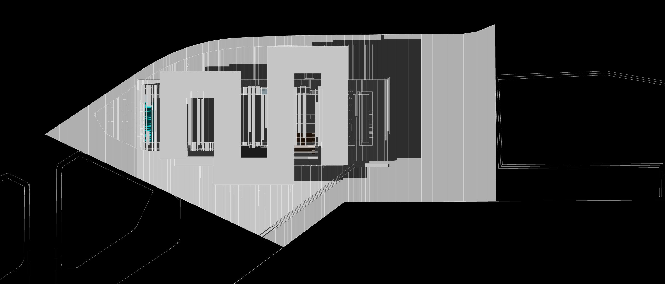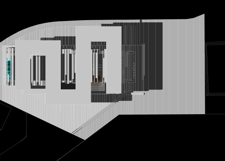 Above this massive wooden block floats the linear, almost weightless structure, like a cloud above the landscape. It winds lightly, like a thought, over the city, like a serpent of light and material. Within it are the exhibition spaces – the very heart of the museum. Two distinct, almost razor-sharp volumes – the massive block and the airy line – unite into a new architectural sculpture, where content and object are inseparably intertwined.