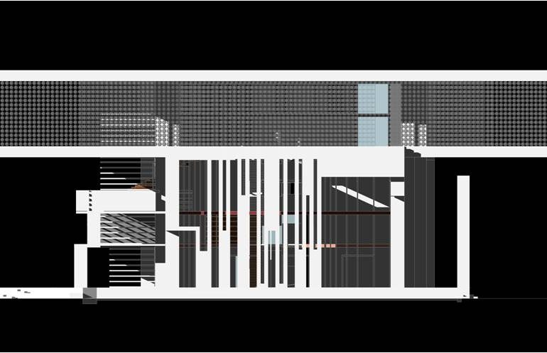 One might say that Finland’s natural heritage – the largest forested area in the world – serves not merely as inspiration, but as an intellectual connection between human and landscape. The tree, the massive timber, the stillness of nature, transform into a built idea: a block of solid wood, hollowed within to accommodate all the service functions – entrance, event spaces, studios, library, restaurant – while simultaneously preserving continuity with the waterfront and the city. The city, the water, the people – all are not merely observed, but integrated, absorbed, and reflected through architecture.