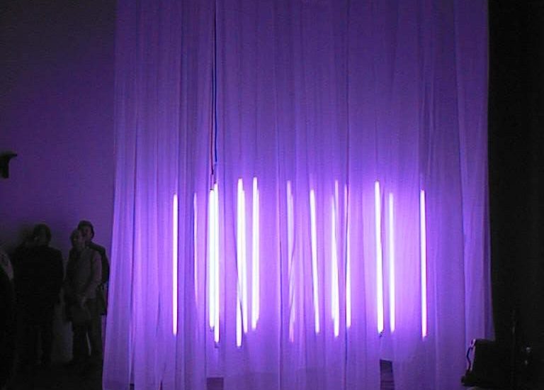 Ziyaretçiler gelir ve gider. Kimileri eşikte durur, bir anlığına onun sessiz varlığı tarafından tutulur. Kimileri fark etmeden geçer, kumaşta en hafif dalgalanmayı, ışıkta en belirsiz titreşimi bırakarak. Ama her biri bu mekân tarafından işaretlenir; hareketin soyut ağırlığı, geçiciliğin zarif ısrarı onları bir anlığına da olsa sarar.