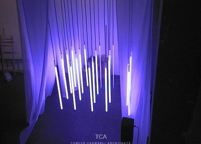 Welcome – Goodbye. Architects and artists were invited by AD Magazine to create interpretations and applications for the theme “Design is a Charm” at Project 4L Gallery. While contributing to this work, we wanted to interpret the transition that is essential to defining our world of thought. For this reason, we requested that the entrance and exit points be dedicated to our work.
